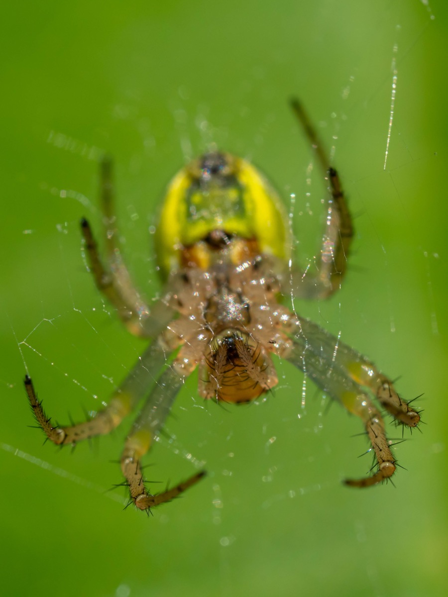 - Morphologie: Araneidae zeigen eine große morphologische Vielfalt, besitzen aber meist einen klar gegliederten Körper mit acht Beinen und Cheliceren zum Verarbeiten von Beute und Seide. Größe und Färbung variieren, viele zeigen Brauntöne, Schwarz oder Gelb.