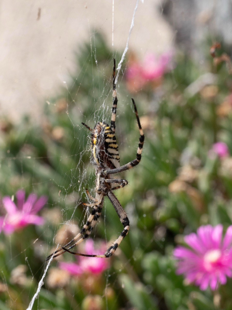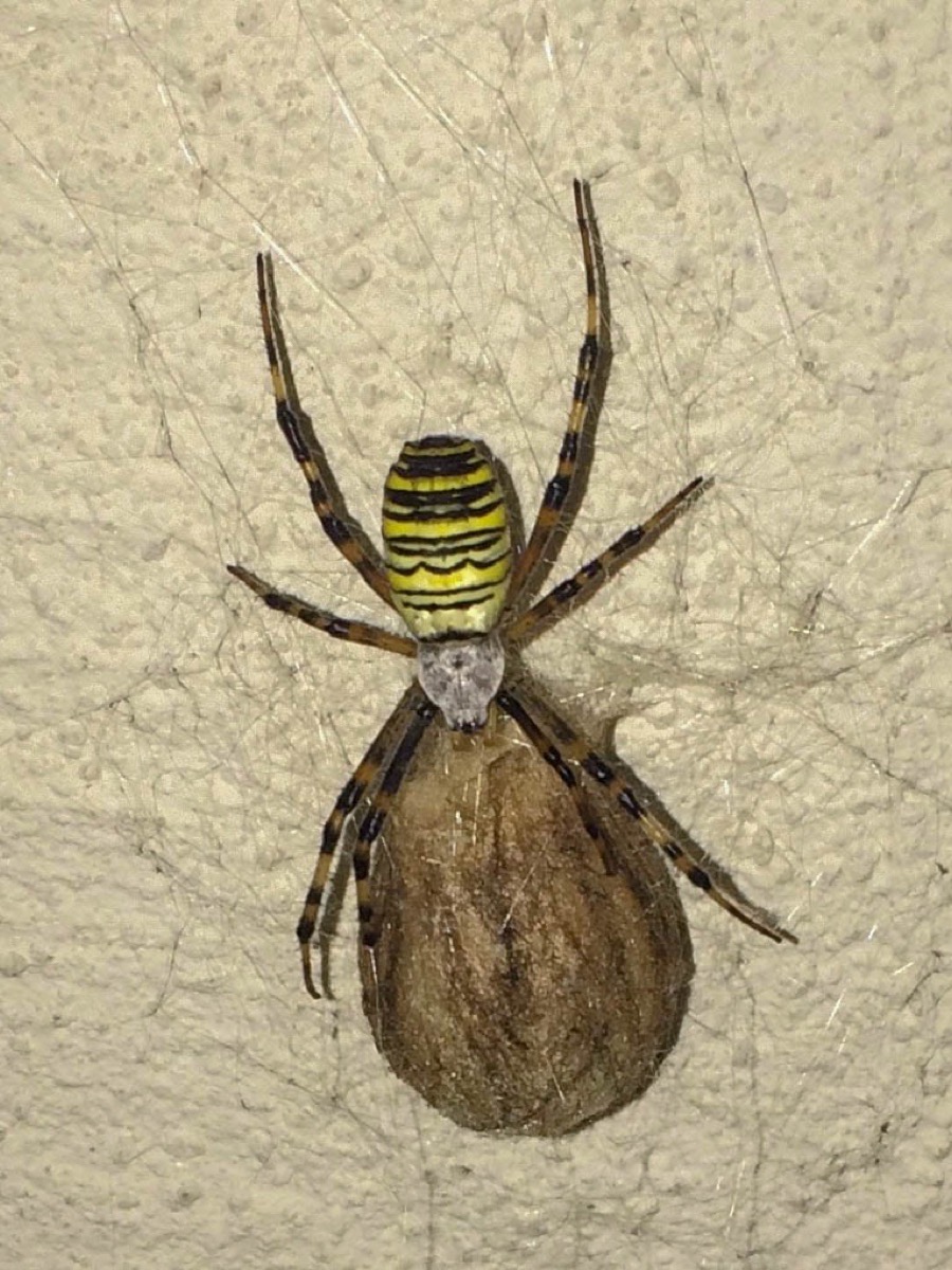 Ah, die Argiopen!!! Eine faszinierende Spinnengattung. Das erste Bild zeigt ein Weibchen, das seinen Eikokon bewacht. Es bleibt dort bis zu seinem Tod, ohne Nahrung aufzunehmen, um den Nachwuchs zu schützen. Das Männchen ist deutlich kleiner.
