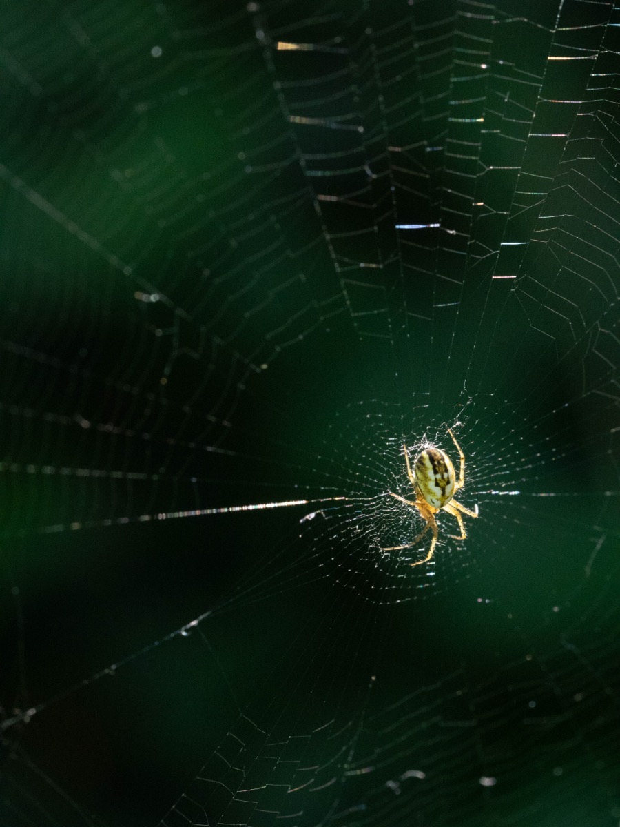 Sie bauen Netze in Form eines Rades oder Orbits, um ihre Beute zu fangen. Diese Netze sind oft komplex und raffiniert konstruiert, mit radialen und spiralförmigen Fäden, die eine kreisförmige Struktur bilden.