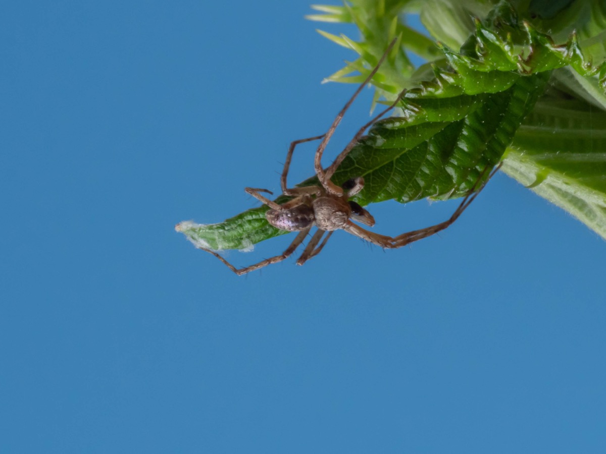 Die Philodromidae – Krabbenspinnen zeichnen sich durch ihre langen Vorderbeine, den flachen Körper und ihren seitlichen Gang aus, ähnlich wie Krabben. Sie sind hauptsächlich Räuber und jagen ihre Beute aktiv, anstatt Netze zu spinnen.
