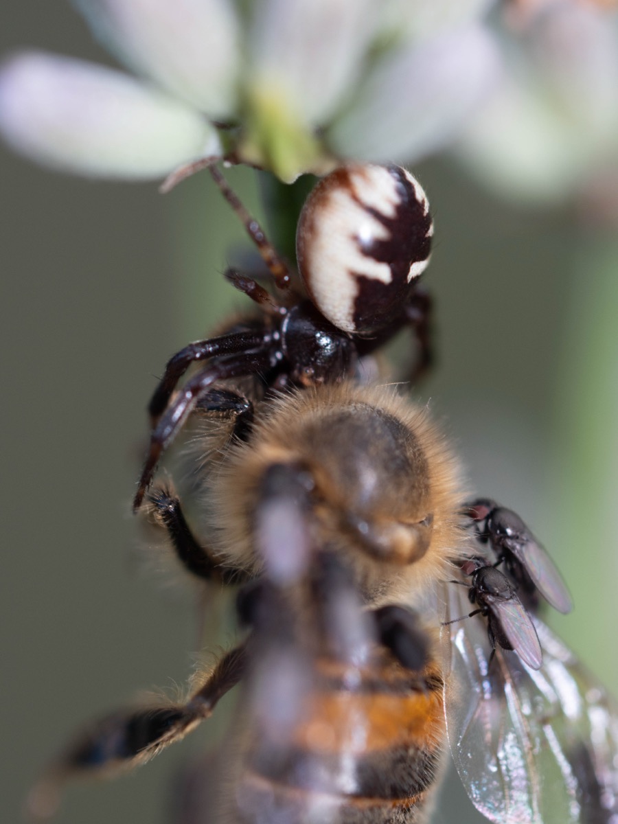 Die Thomisidae – Krabbenspinnen oder Familie der Thomisiden umfasst Spinnen, die als Krabbenspinnen bekannt sind. Ihr Name kommt von ihrer krabbenähnlichen Erscheinung mit zwei Paar verlängerten Vorderbeinen, die seitlich gerichtet sind, und zwei kleineren Hinterbeinpaaren. Sie jagen, indem sie ihre Beute mit den Beinen fangen!