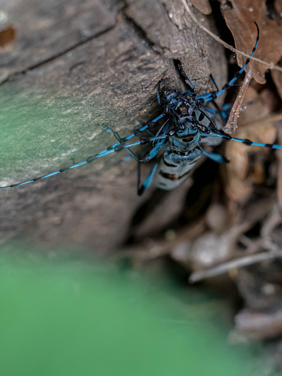 Diese Käfer beeindrucken vor allem durch ihre Größe, manche sind mehrere Zentimeter lang, wie der Große Eichenbock, den ich am Waldrand auf einem Gehweg getroffen habe, oder durch ihr großartiges Erscheinungsbild, wie der Aristobia freneyi, den ich 2013 in Khao Lak, Thailand, gesehen habe, mit seiner Färbung, den Stacheln am Körper und den „Pompons“ an den Antennen.
