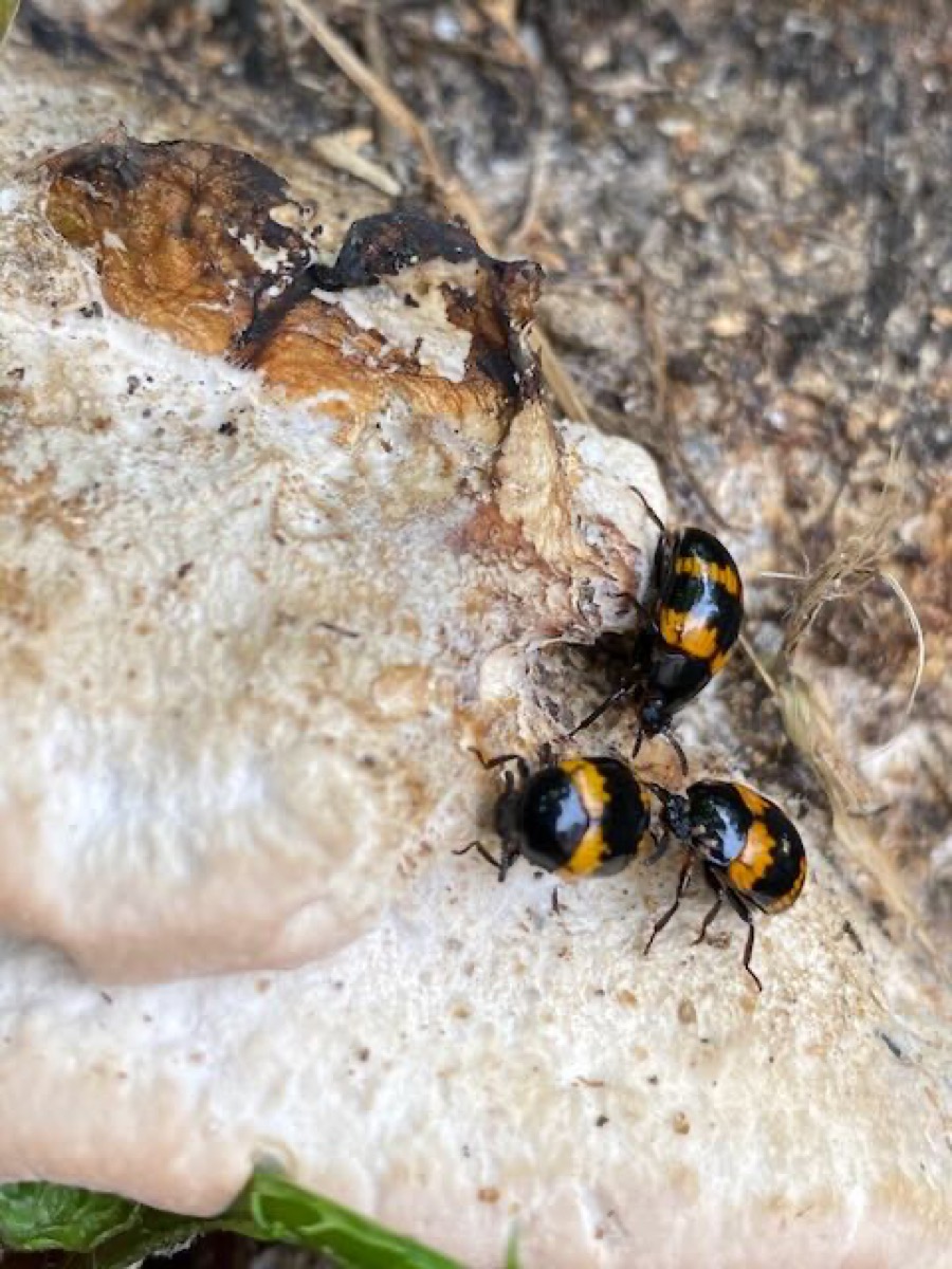 The Bolete Diaper is mycophagous, as its name suggests. Its shape is reminiscent of lady beetles.