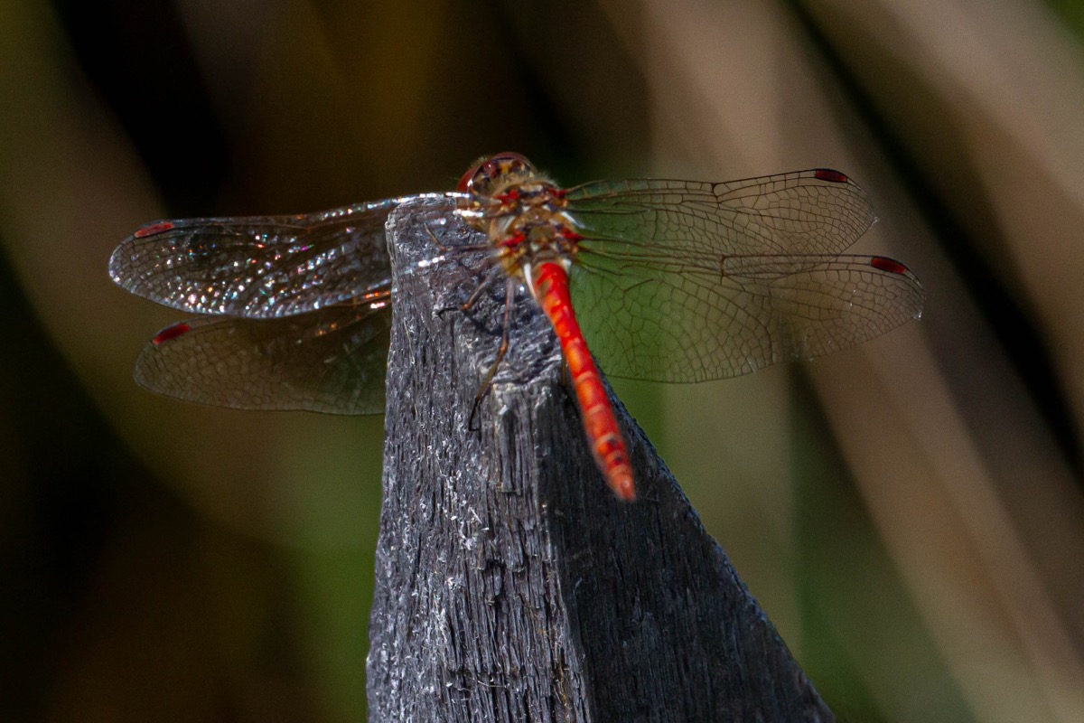 - Sympetrum – Small red or yellow dragonflies, very common in late summer (S. sanguineum, S. striolatum)
