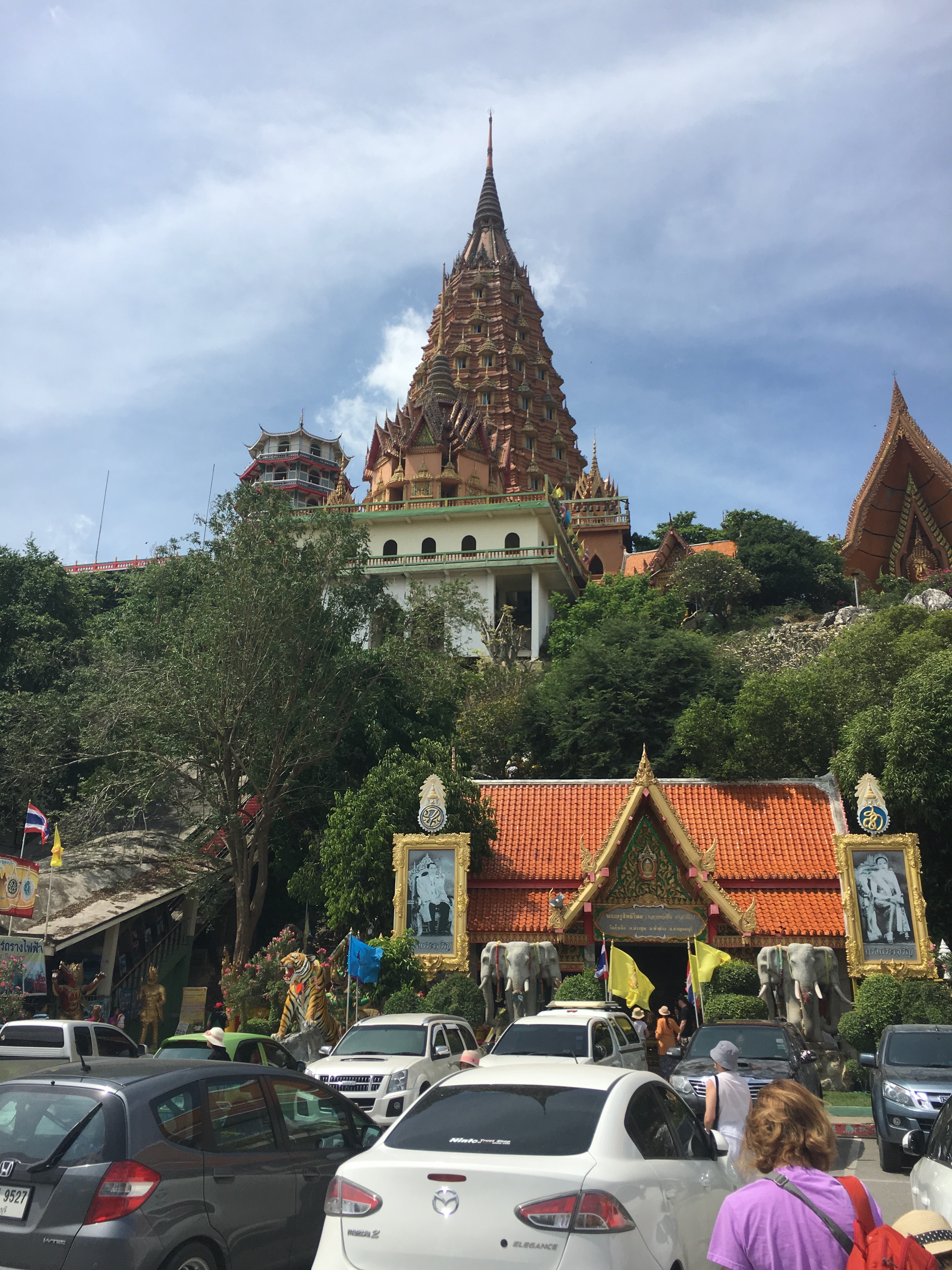 On the way back towards Bangkok, there is a beautiful temple atop a hill, Wat Tham Sua. It houses a magnificent golden Buddha protected by a half-dome.