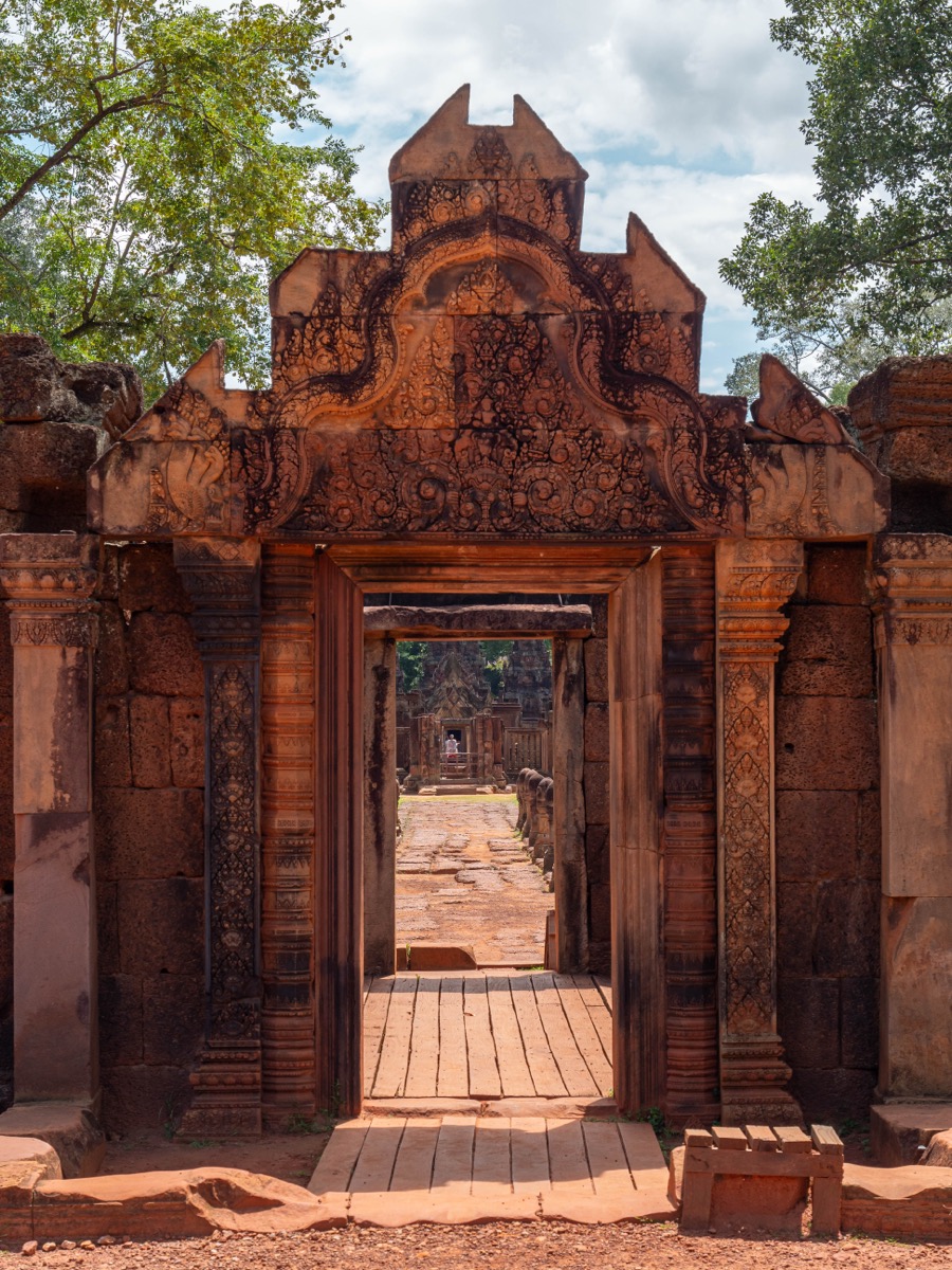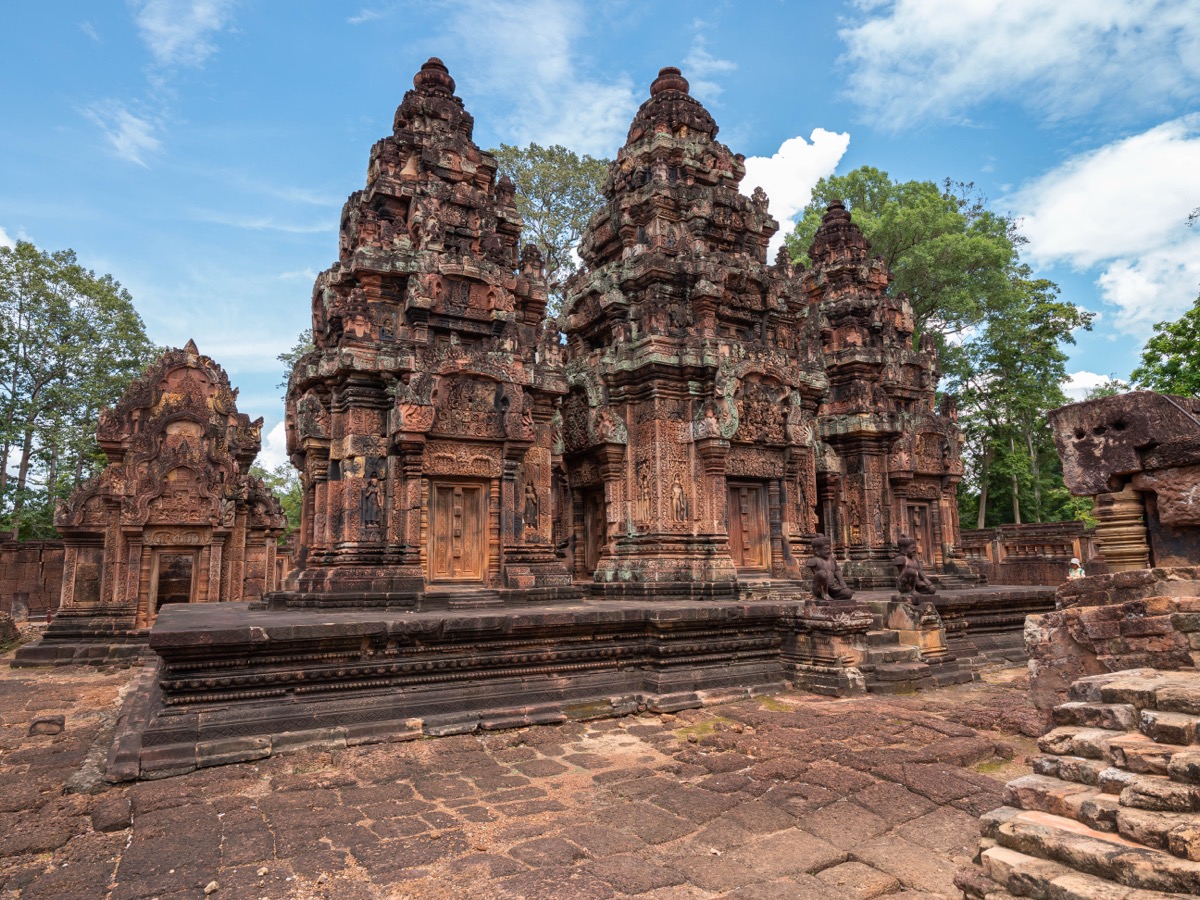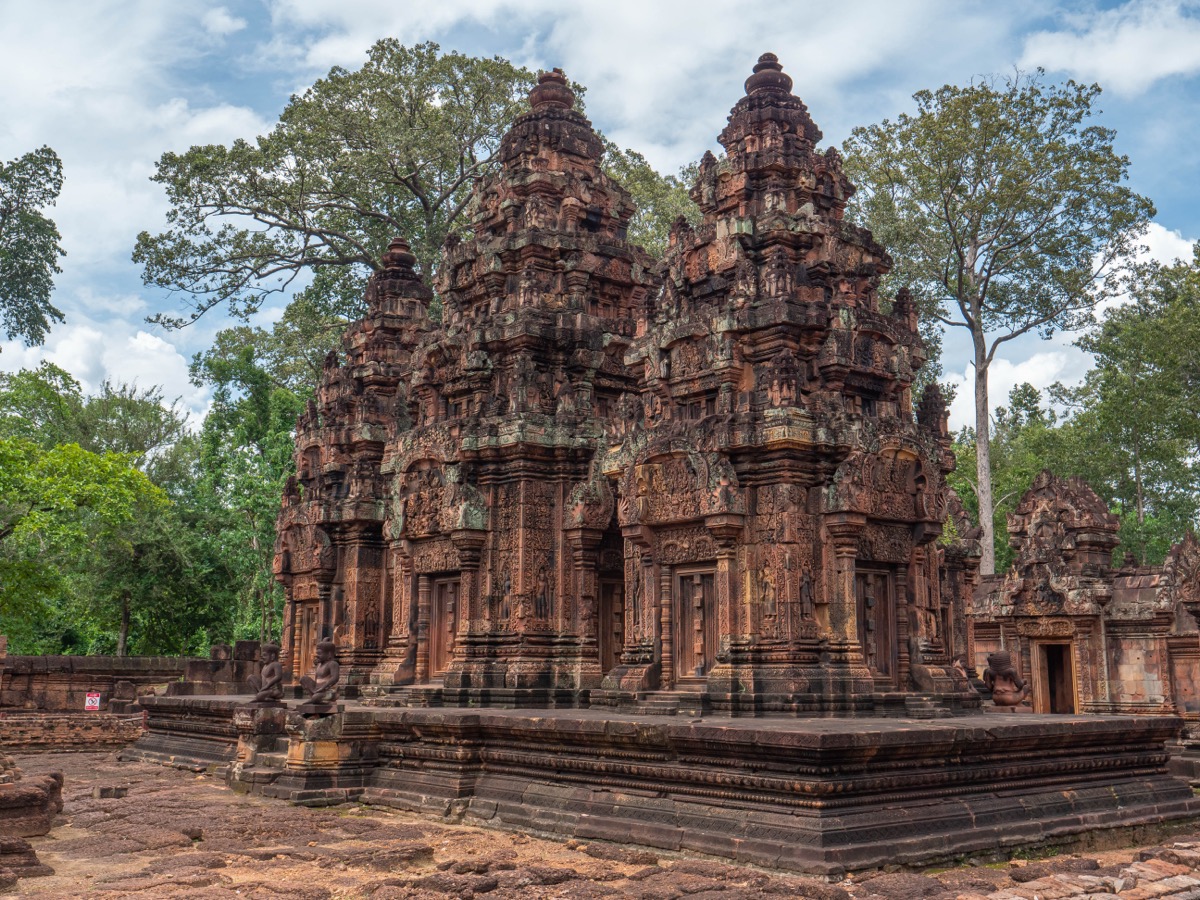 Situé à environ 25 km au nord-est d’Angkor Wat, Banteay Srei — littéralement “la citadelle des femmes” — est l’un des plus petits temples du complexe d’Angkor, mais sans doute l’un des plus précieux du point de vue artistique.