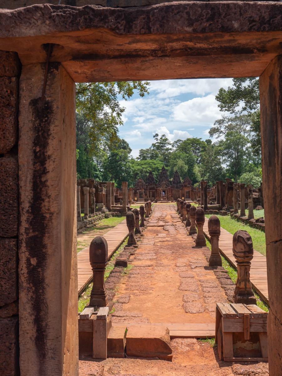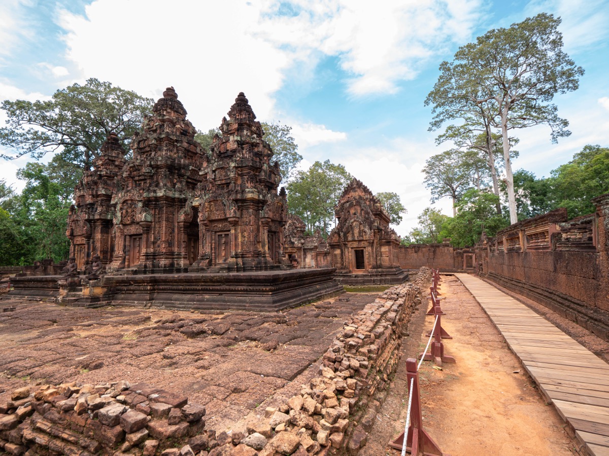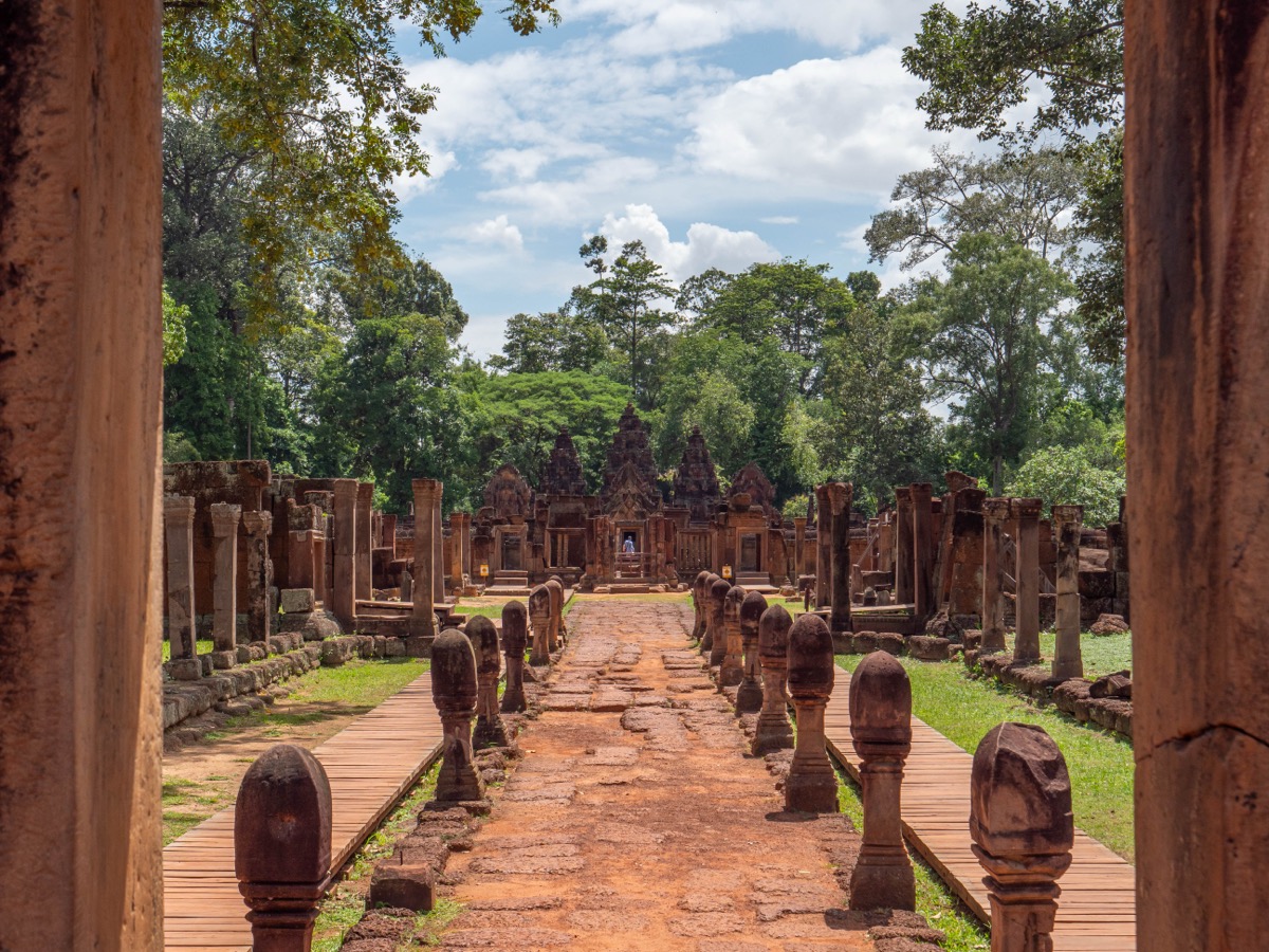 Situé à environ 25 km au nord-est d’Angkor Wat, Banteay Srei — littéralement “la citadelle des femmes” — est l’un des plus petits temples du complexe d’Angkor, mais sans doute l’un des plus précieux du point de vue artistique.