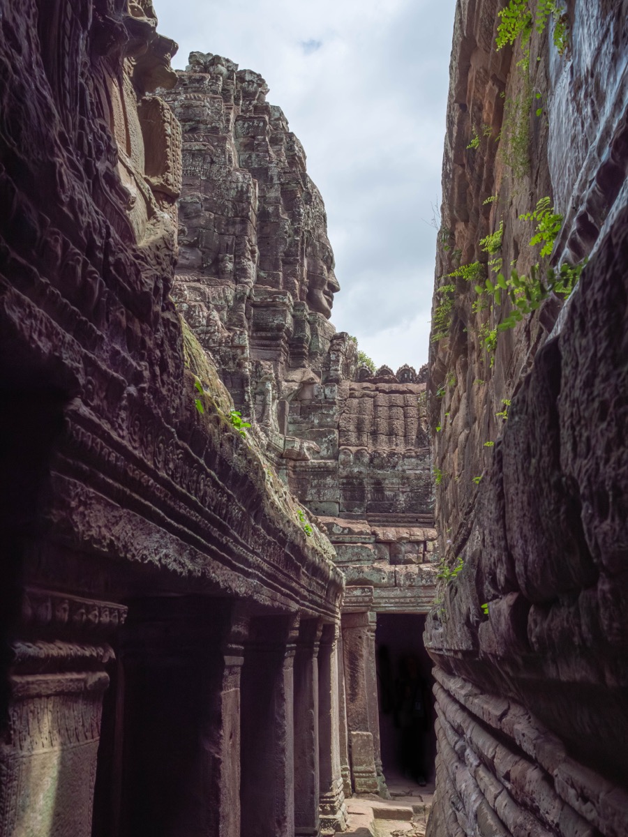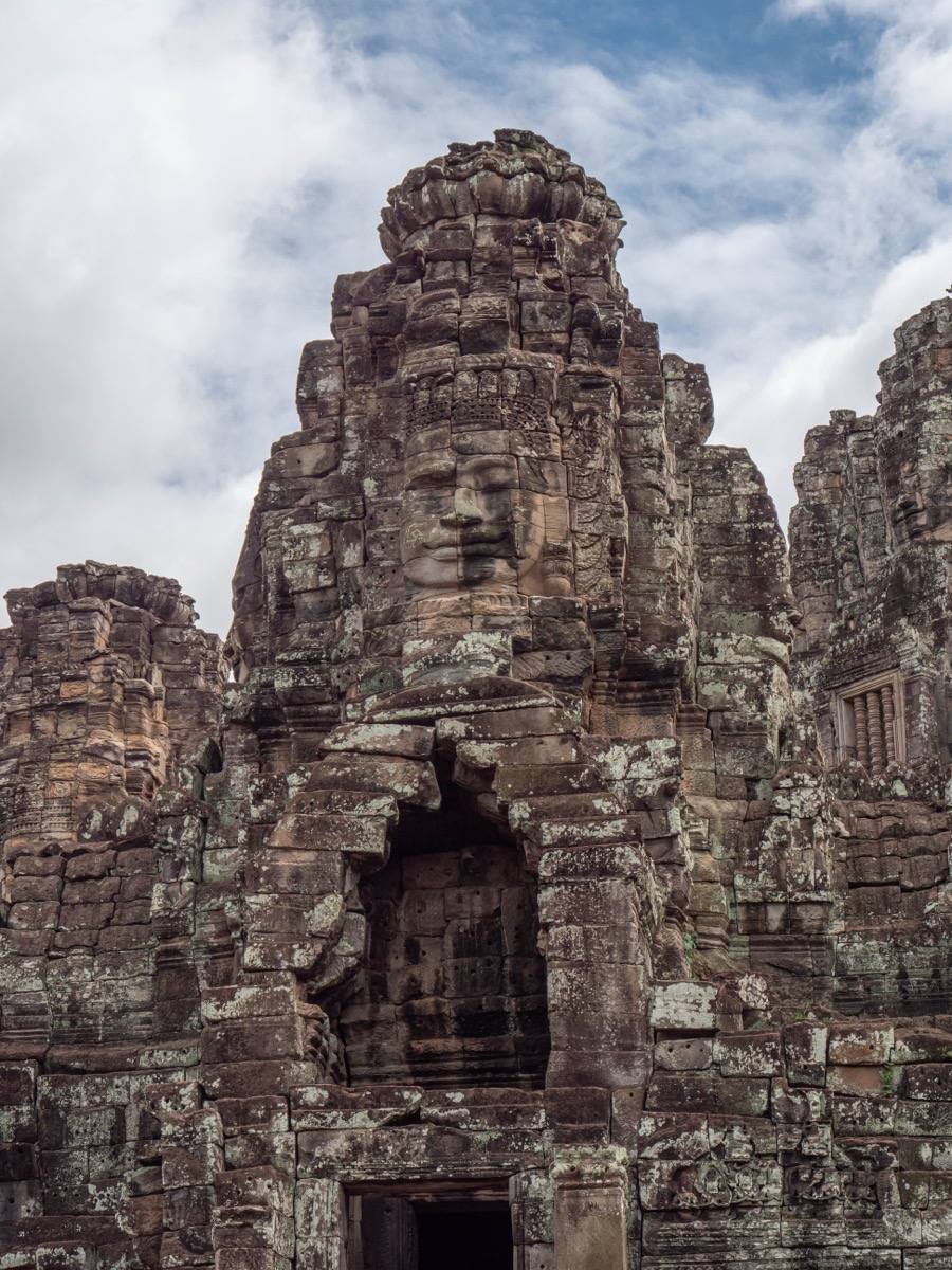 Ce qui le rend si remarquable, ce sont les innombrables visages sculptés dans la pierre qui ornent ses tours. On estime qu’il y a plus de 200 visages géants, tous différents, disposés sur les tours principales du temple. Ces visages sont censés représenter le roi Jayavarman VII lui-même, ou une combinaison du roi et du dieu bodhisattva Avalokiteshvara.