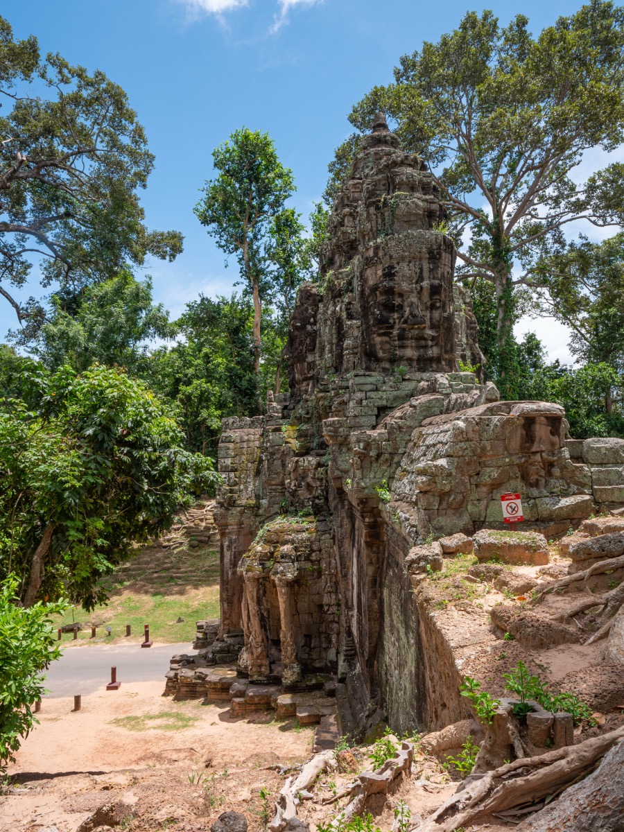 La porte de la Victoire reprend le même modèle architectural que les autres portes d’Angkor Thom :