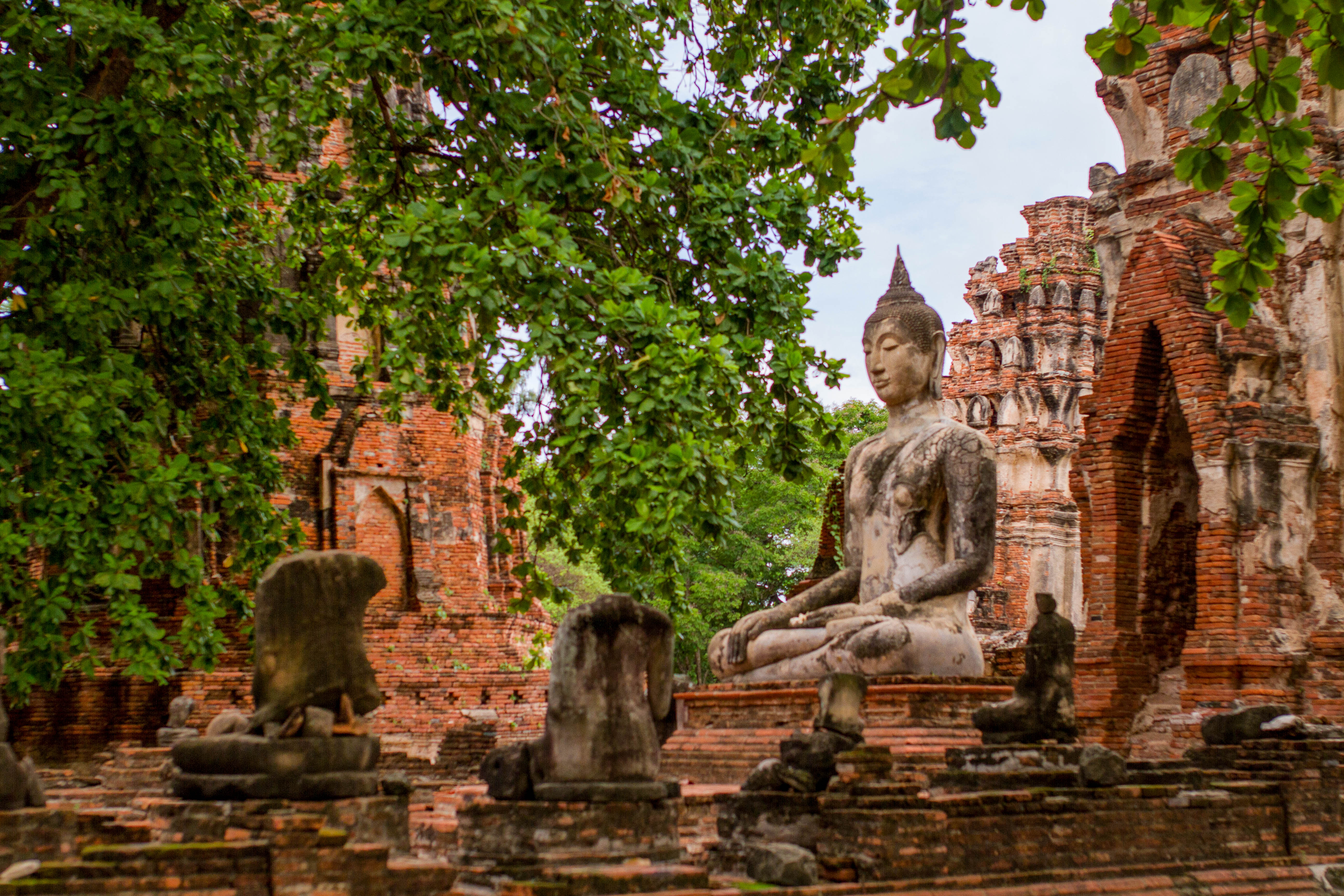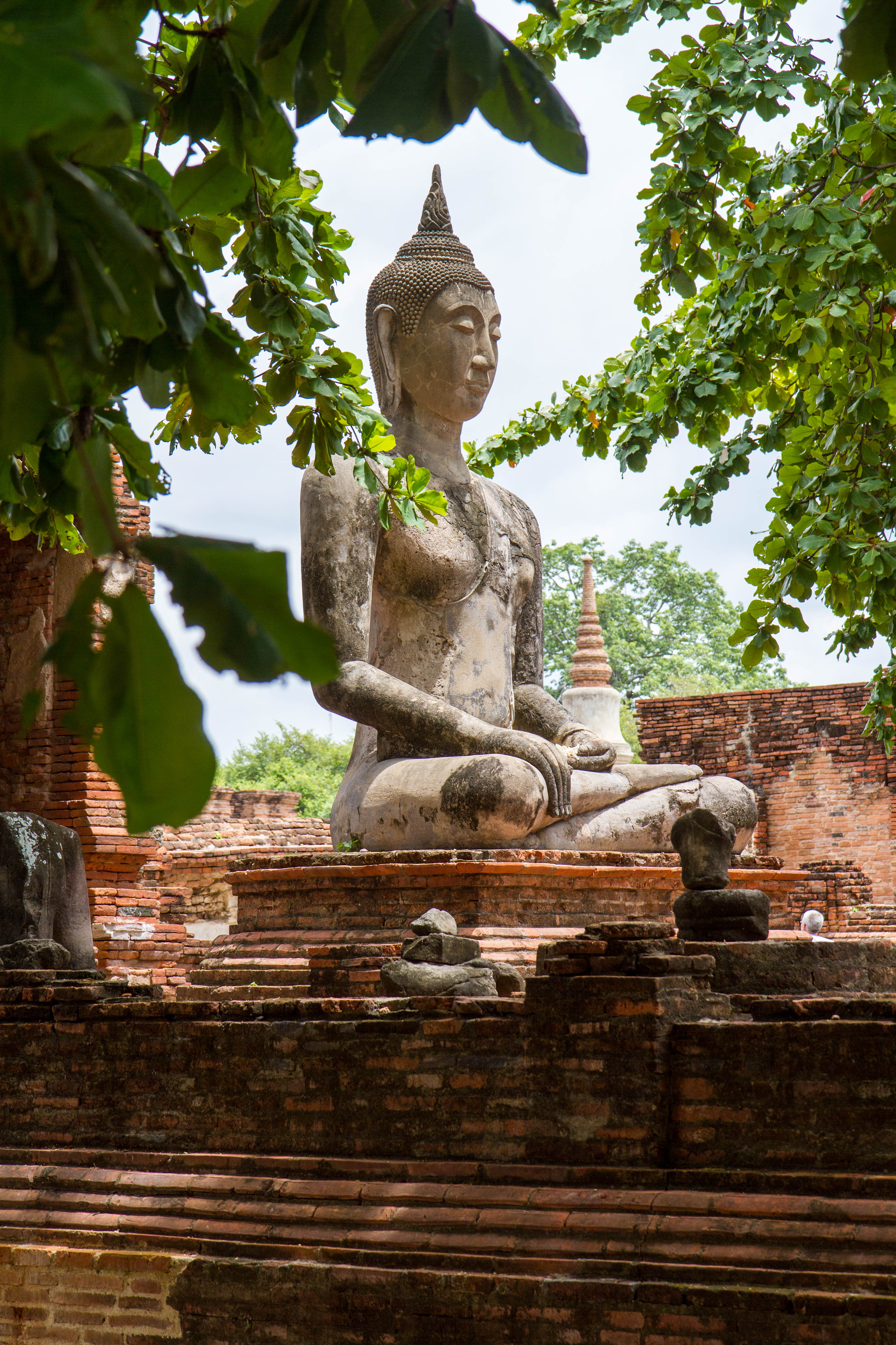 Comme à Sukhothaï, les monuments et temples sont éparpillés sur une grande surface. Ce qui est frappant à Ayutthaya, c’est que la plupart des statues de Bouddha ont été saccagée, la tête ayant été coupée et emportée.