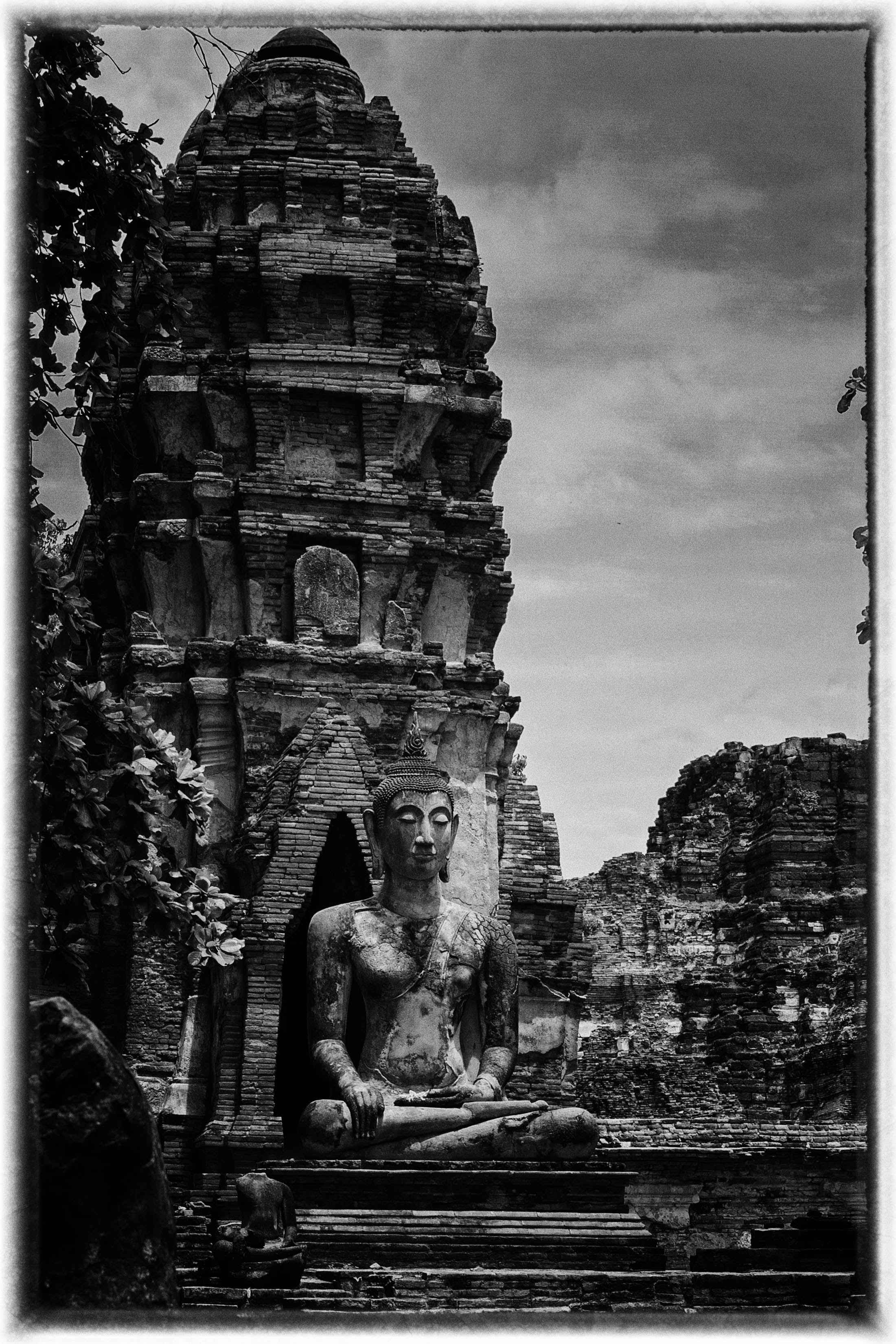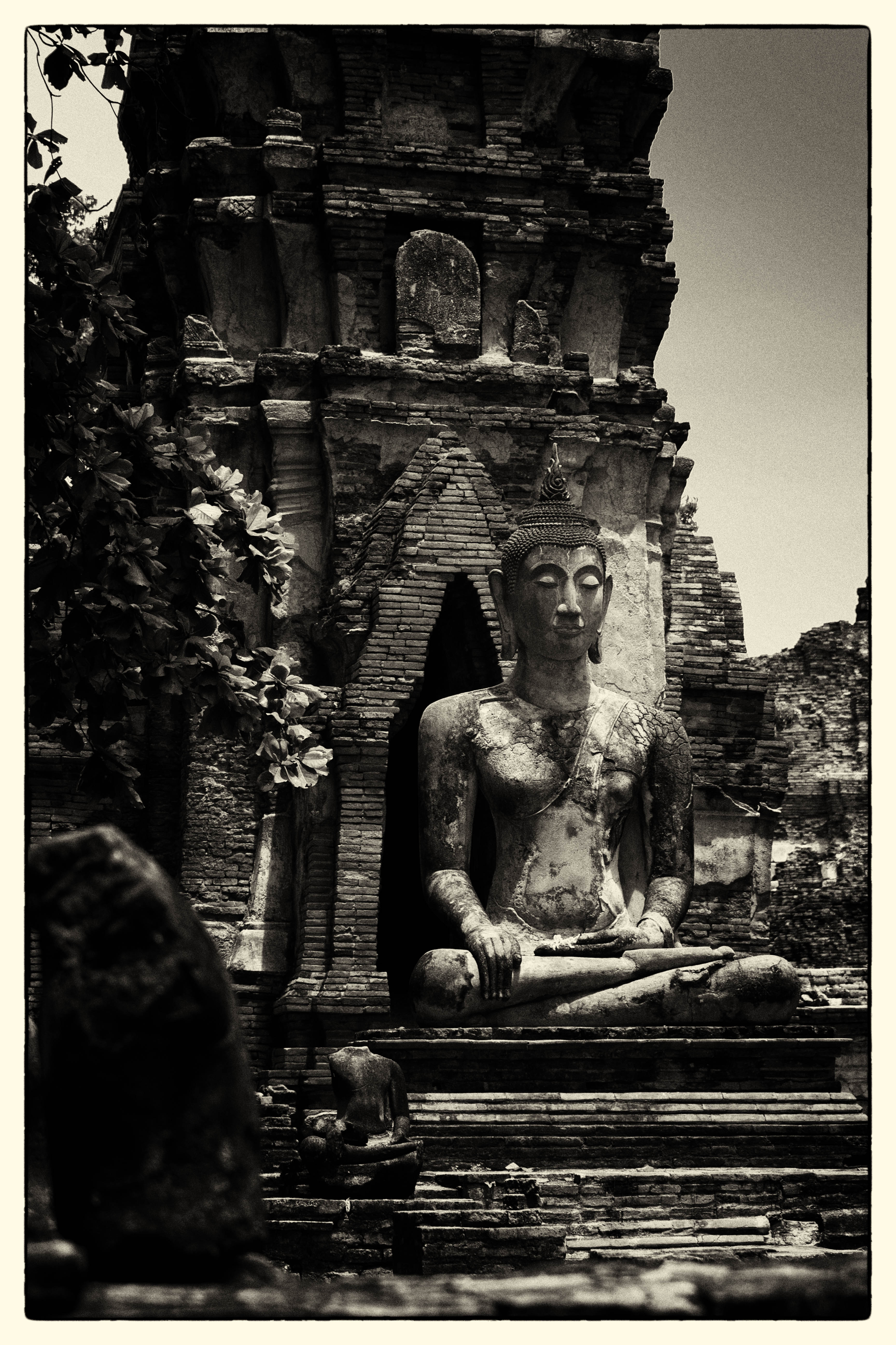Statue de Bouddha en posture méditative à Ayutthaya, au cœur du Wat MahathatBouddha assis parmi les vestiges d’un temple d’Ayutthaya, Wat MahathatWat MahathatBouddha en méditation devant une tour-sanctuaire (prang) délabrée à Ayutthaya, capturé en noir et blanc, Wat MahathatBouddha en méditation devant une tour-sanctuaire (prang) délabrée à Ayutthaya, capturé en noir et blanc, Wat MahathatL’iconique tête de Bouddha prisonnière des racines d’un arbre sacré à Wat Mahathat, AyutthayaLa célèbre tête de Bouddha enchâssée dans les racines d’un figuier sacré à Wat Mahathat, Ayutthaya, accompagnée d’offrandes floralesBouddha assis entouré de statues décapitées et de chedis en ruines dans l’enceinte du Wat Mahathat, AyutthayaPanorama sur les ruines du parc historique d’Ayutthaya, classé au patrimoine mondial de l’UNESCOPrangs élancés en style khmer du Wat Mahathat, un symbole de l’ancienne capitale siamoisePerspective sur les prangs effilés et érodés du temple Wat Mahathat, témoins de la grandeur passée d’Ayutthaya
