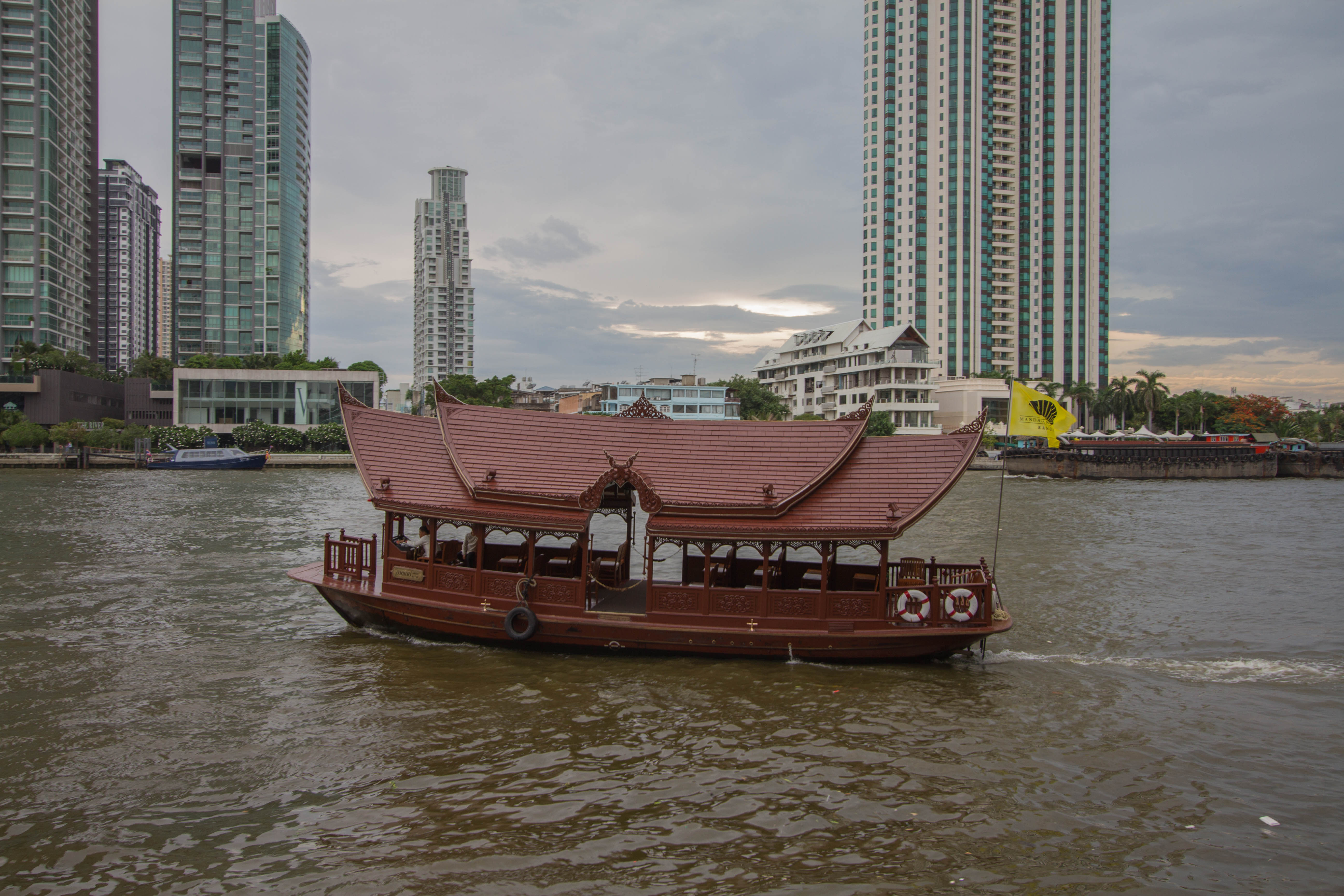 Utilisée depuis des siècles pour le commerce et les transports, cette rivière reste aujourd’hui un axe central de la vie urbaine. Des bateaux-navettes y circulent en permanence, facilitant les déplacements et offrant un point de vue unique sur la ville. Des croisières permettent aussi de découvrir Bangkok sous un angle plus paisible, en particulier au coucher du soleil.