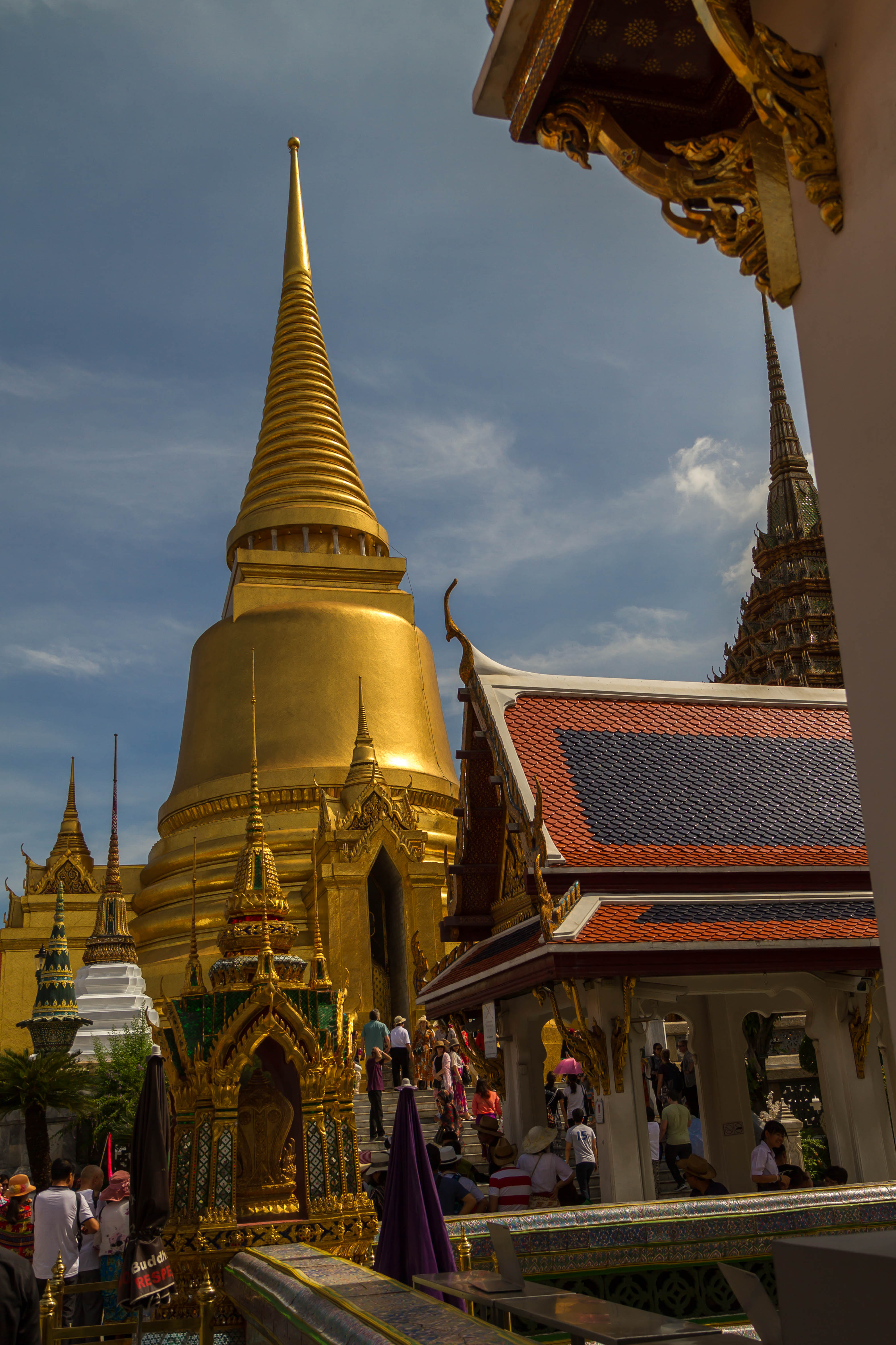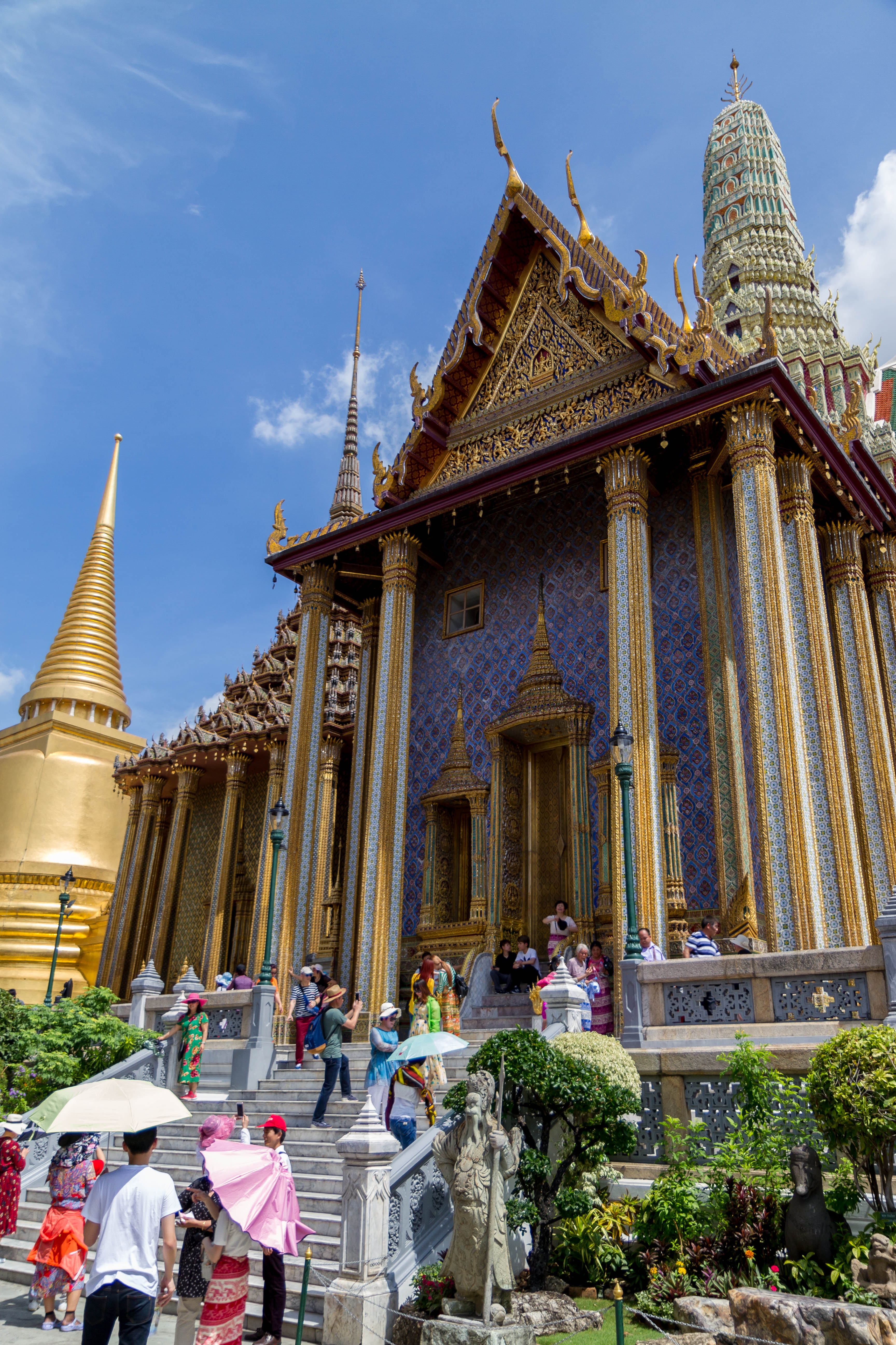 Le complexe s’étend sur plus de 200 000 m² et abrite de nombreux bâtiments, pavillons et cours intérieures. Le plus célèbre d’entre eux est le Wat Phra Kaew, ou Temple du Bouddha d’Émeraude, qui conserve une statue sacrée du Bouddha taillée dans un seul bloc de jade.
