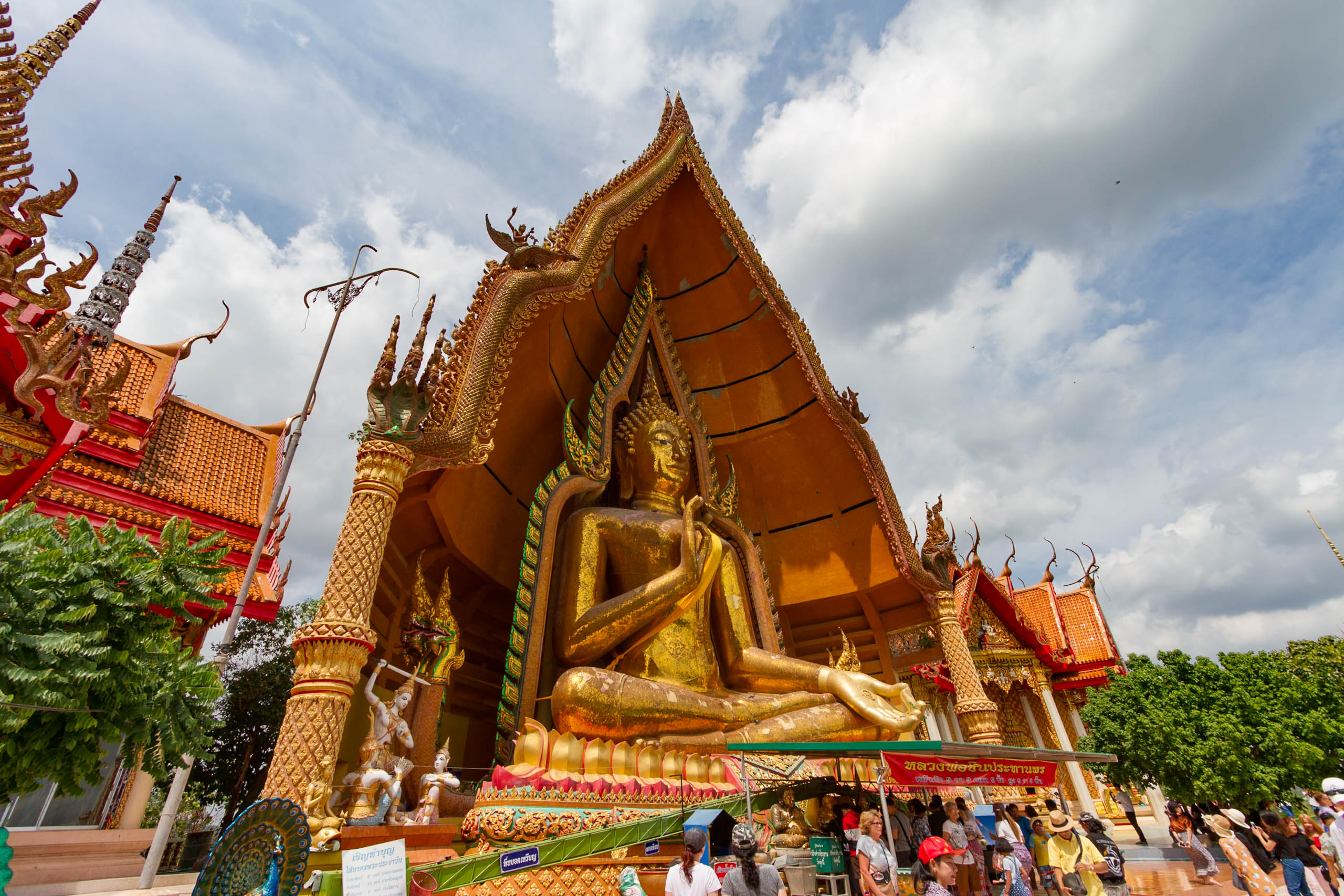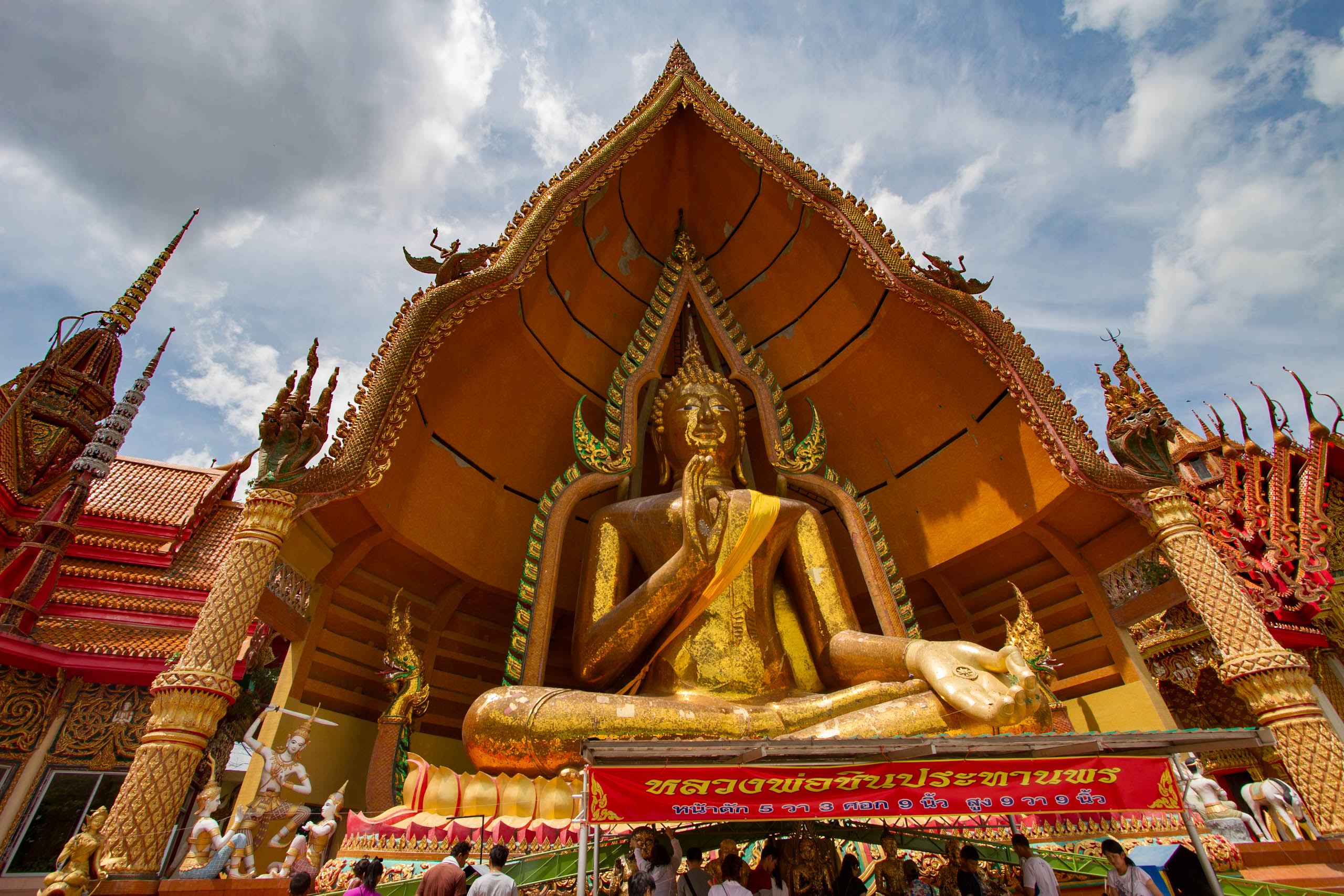 Le point central du site est une immense statue de Bouddha assis, haute de plus de 18 mètres, en position de bénédiction, entièrement dorée. Elle est abritée dans une niche en forme de pétale de lotus, adossée à un grand chedi orné.