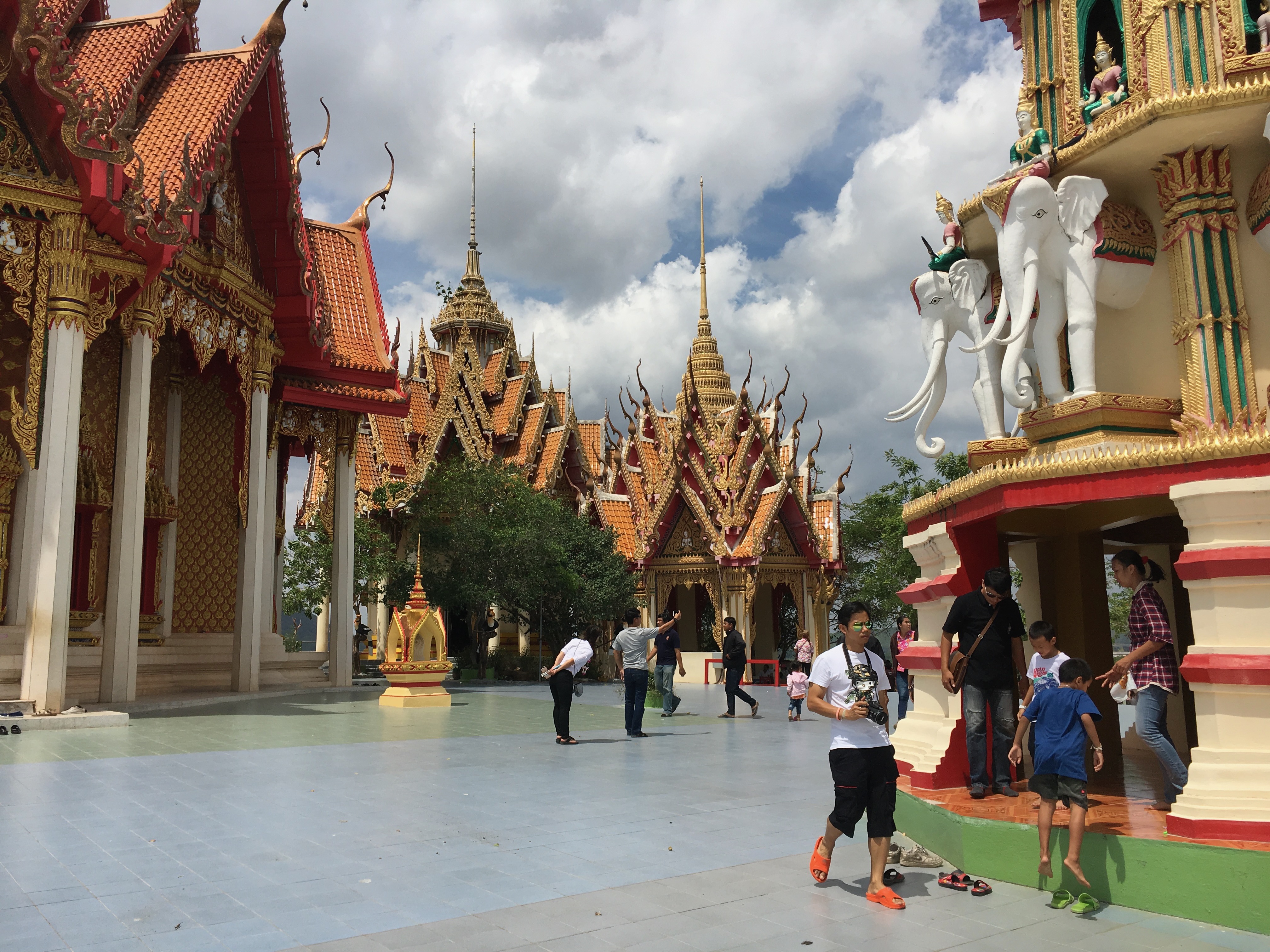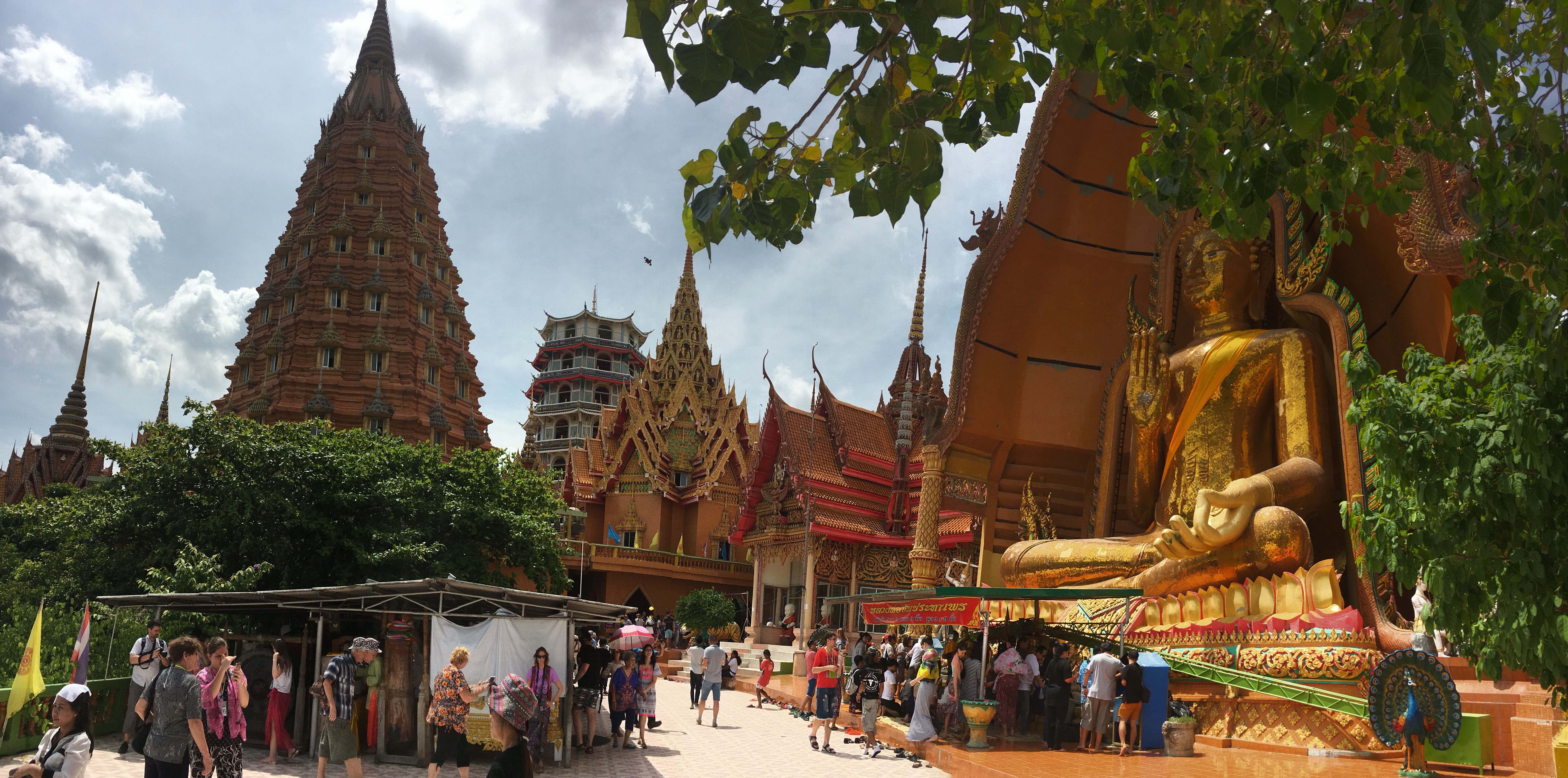 En rentrant en direction de Bangkok, se trouve un très beau temple au sommet d’une colline, le Wat Tham Sua. Il y abrite un magnifique Bouddha doré protégé par une demi-coupole.